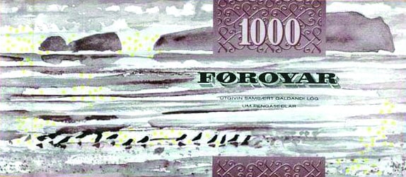 While the Danish banknotes of 1,000 kroner (DKK1,000.1; .2; .3 and .4) will be demonetized as of 31 May 2026, the Faroese notes of 1,000 krónur (FAK1,000.1 and .2) remain in circulation.