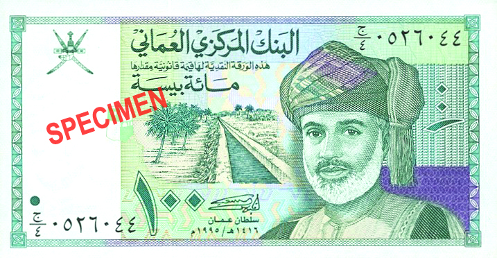 (OMRo,100.4) 100 baisa (= 0,10 rial) issued in 1995,
